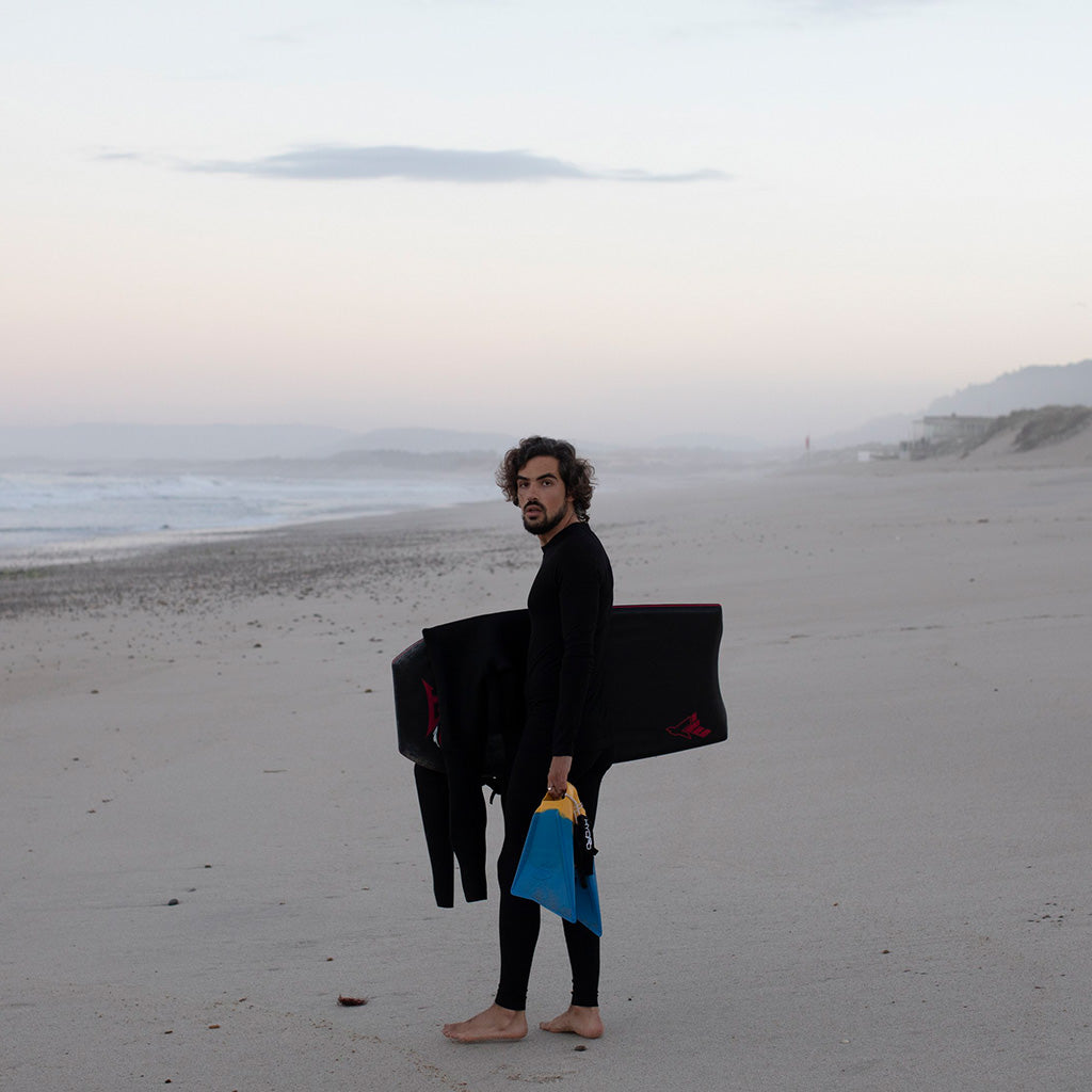 The touch and feel is just as in our current collections, because the inner layer of the thin and lightweight knit is ECONYL® yarn and the outer layer is merino wool.